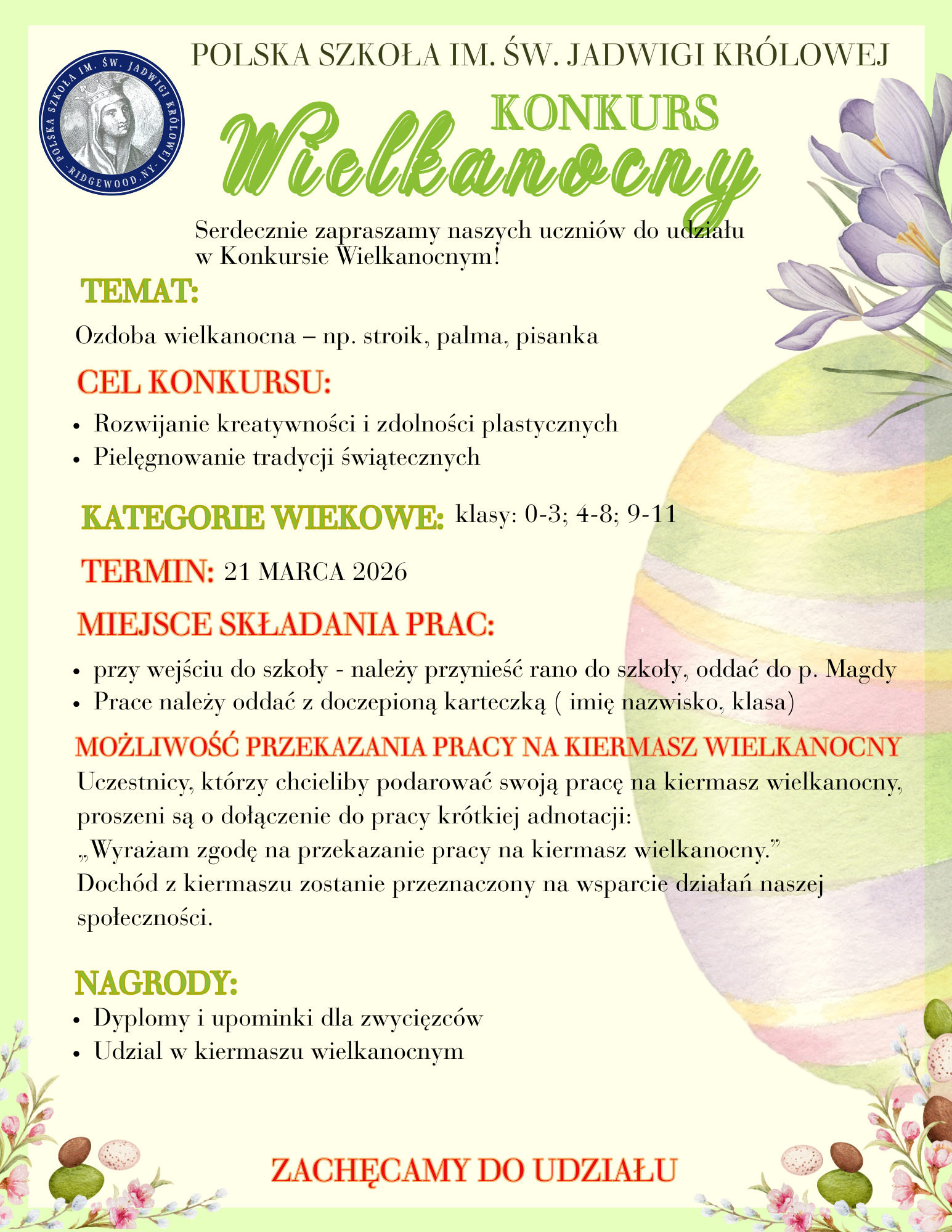 Image Konkurs Wielkanocny 04 Wednesday Mar 2026 Posted by polskaszkolajk in Uncategorized ≈ Leave a comment Share this: Share on X (Opens in new window) X Share on Facebook (Opens in new window) Facebook Like Loading... Related