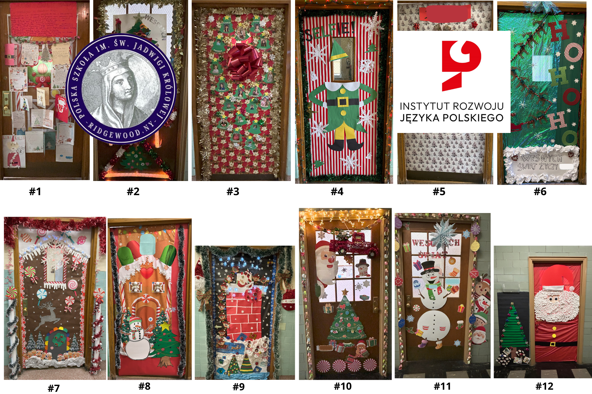 Z inicjatywy Komitetu Rodzicielskiego oraz dzięki środkom dofinansowania z Instytutu Rozwoju Języka Polskiego im. św. M.M. Kolbego na działanie placówki, wszystkie klasy przystąpiły do KONKURSU na najładniejszą świateczną dekorację klasowych drzwi. Cała szkoła przystąpiła do świetnej, kreatywnej zabawy i integrującego działania – szkolnego projektu konkursowego. Dekoracja drzwi była początkiem działania, bowiem za drzwiami, równie pięknie udekorowane są klasy.